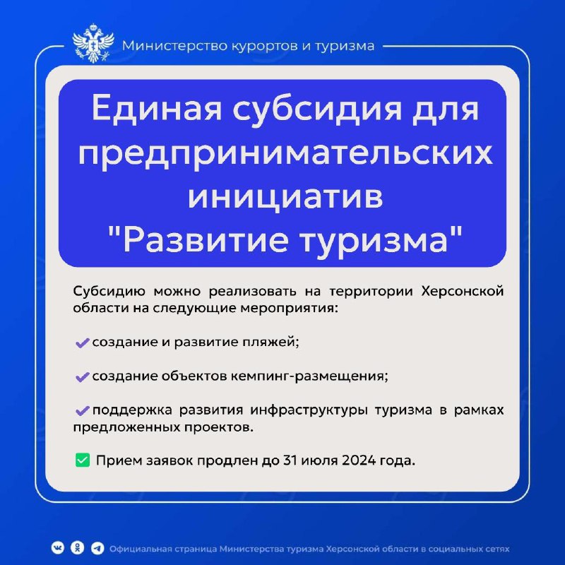 У предпринимателей Херсонской области есть отличная возможность развить свой бизнес в сфере туризма. Субсидию можно реализовать на территории Херсонской области…
