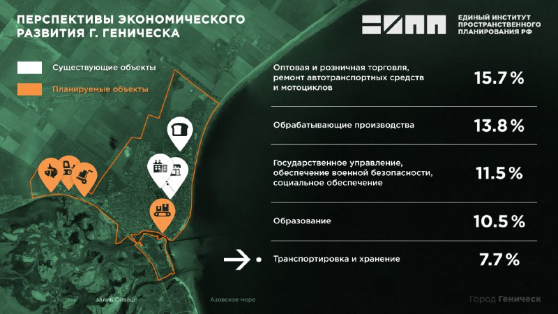 Согласно Генеральному плану основными видами экономической деятельности в структуре занятости населения к 2035 году в г. Геническе станут: оптовая и…